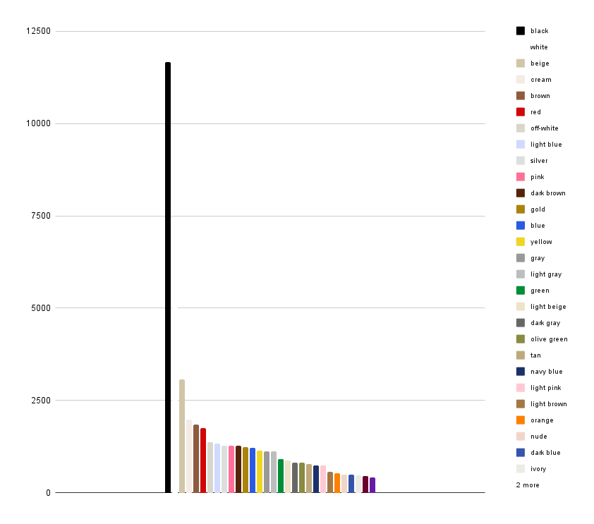 There’s an obvious and boring answer: the most popular color in clothing is always black. Followed by white. But things get more interesting as we go further down the list.