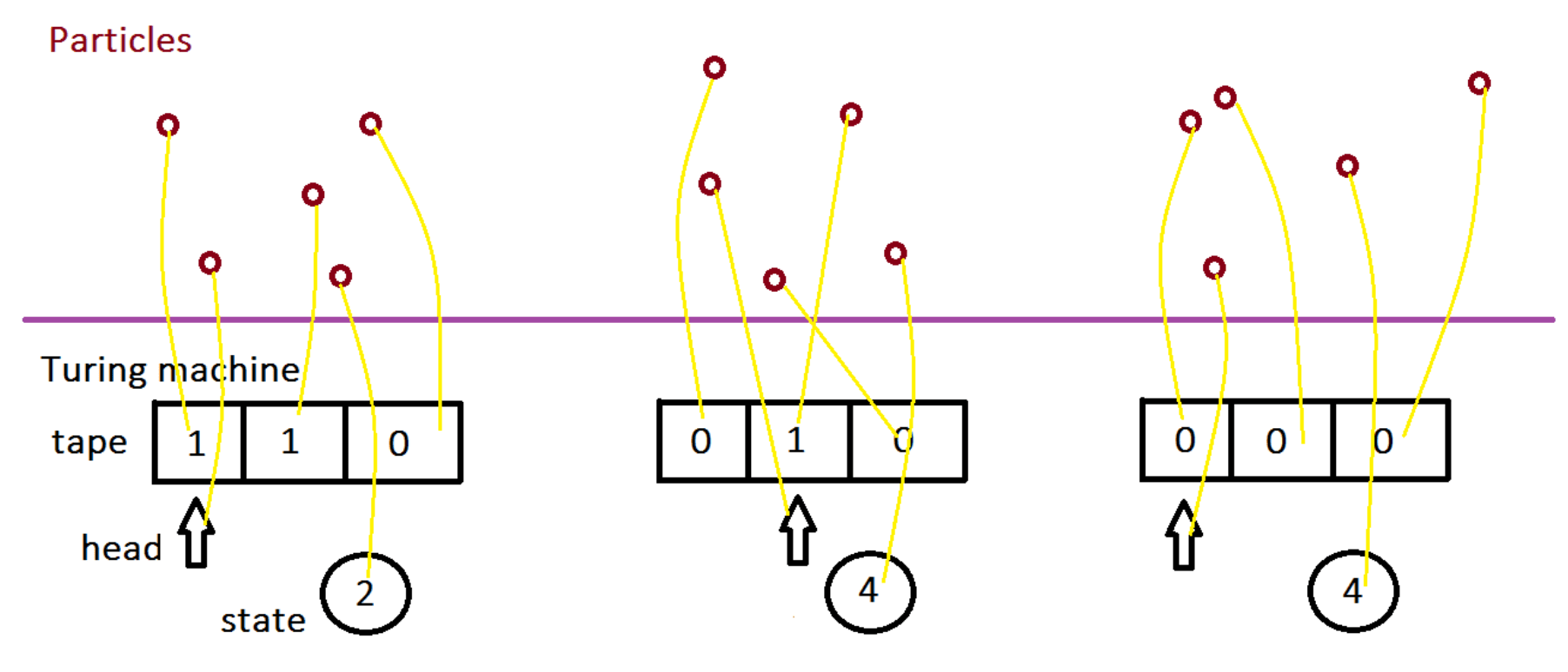Similarly, it is not enough to say that a position of a molecule represents a state of a Turing machine, there must also be a way how the rules of the TM actually constrain the movement of the molecule.