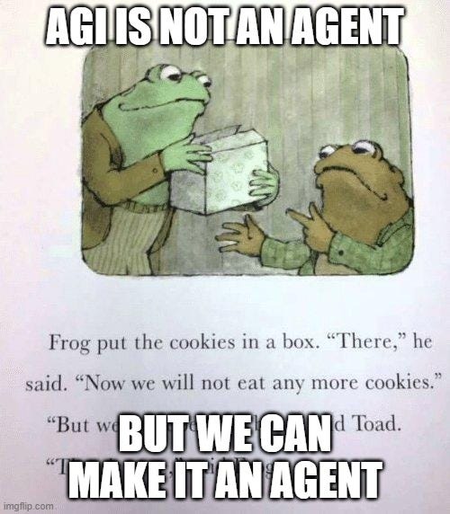 Is it a design choice for any individual which way to build their AGI agent? Yes, provided they remain in control of their AGI. But how much choice will they have, competing against many others? If you not only keep the human ‘in the loop’ but only ‘complement’ them, you are going to get absolutely destroyed by anyone who takes the other path, whether the ‘you’ is a person, a company or a nation.