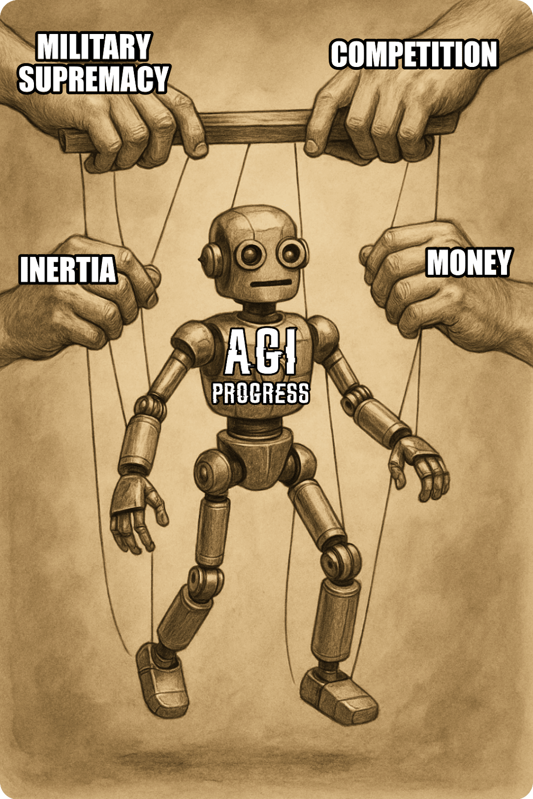 Yet here we are, pouring hundreds of billions of dollars into AI research and development in 2025. Clearly, investors, entrepreneurs, and governments see enormous value in pursuing this technology, even as it potentially renders human labor obsolete. Why such a paradoxical enthusiasm? Perhaps we're betting on new and unimaginable forms of value creation emerging as they have before, or perhaps we haven’t fully grappled with the implications of what AGI might actually mean. Either way, the race is on, driven primarily by the following systemic forces:
