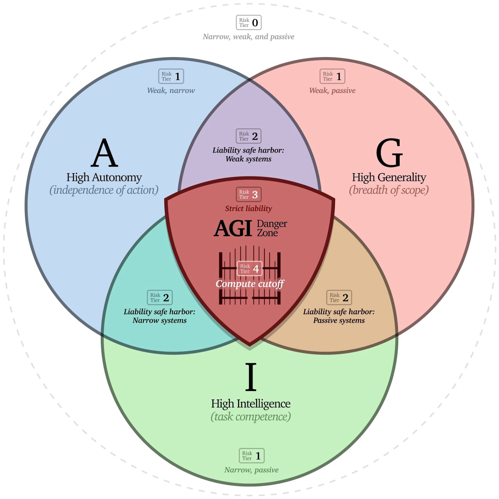 The “AGI Venn Diagram” from Anthony Aguirre, proposing a tiered framework for evaluating and regulating AI systems.
