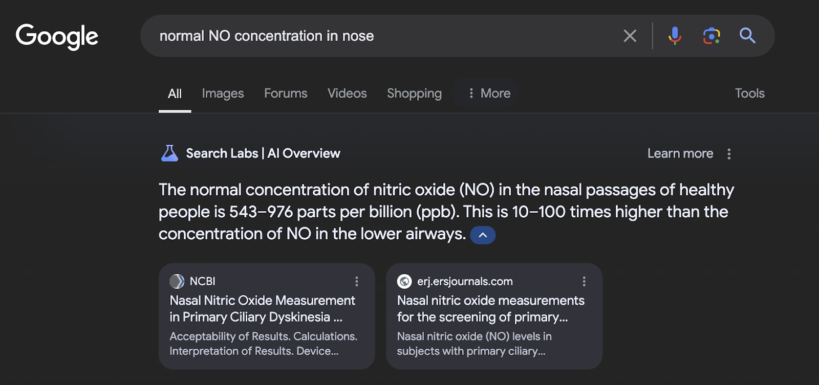 I found the dosage of NO in Enovid in a trial registration. Unfortunately I misread the dose- what I original read as “0.11ppm NO/hour” was in fact “0.11ppm NO*hour”. I spent a while puzzling out what this meant, with the help of Thomas Kwa, some guy on twitter, and chatGPT (the first time it’s been genuinely useful to me). My new interpretation is that this means “actual concentration upon application*1 hour/time at that concentration”. Since NO is a transient molecule, this means my guess for the amount of NO in Enovid was off by 2-3 orders of magnitude.