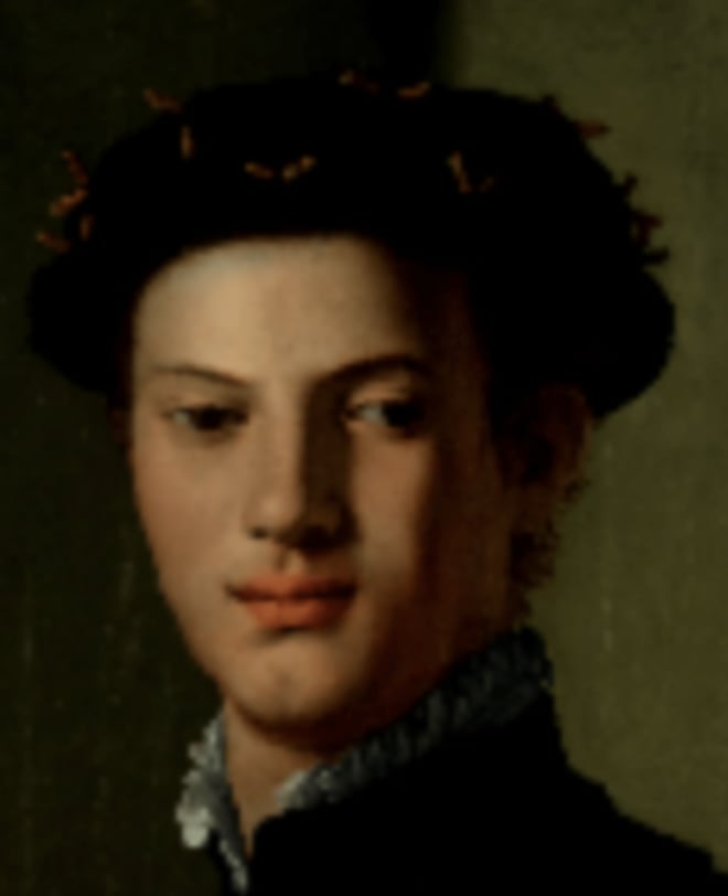 Very good work, but I can tell this was generated by a GAN. I would be interested in learning more about the model you used to create her.