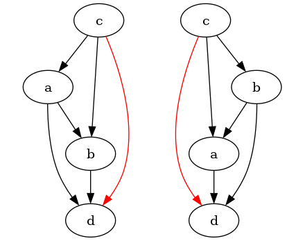 stepwisetakes a similar approach by computing all minimum feedback arc sets for G and then removing them to ensure the graph is acyclic (so that later establishing transitivity does not violate asymmetry). The result is a set of directed acyclic graphs A, one for each minimum feedback arc set removed from G. For this, one can use an algorithm for finding the minimum feedback arc set from Baharev 2021, calledmfasinstepwise.Algorithm 2: Computing