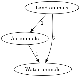 Example 3. Let Ω={L (Land animals),A (Air animals),W (Water animals)}, and the current preference prefer land animals over air animals over water animals, that is EG={L1→A,L1→W,A2→W}.