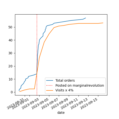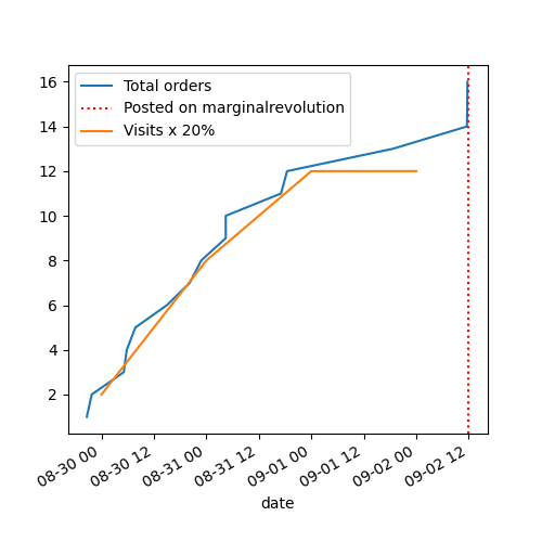 In the end, I got 1300 visits, most from when it was posted on marginal revolution.