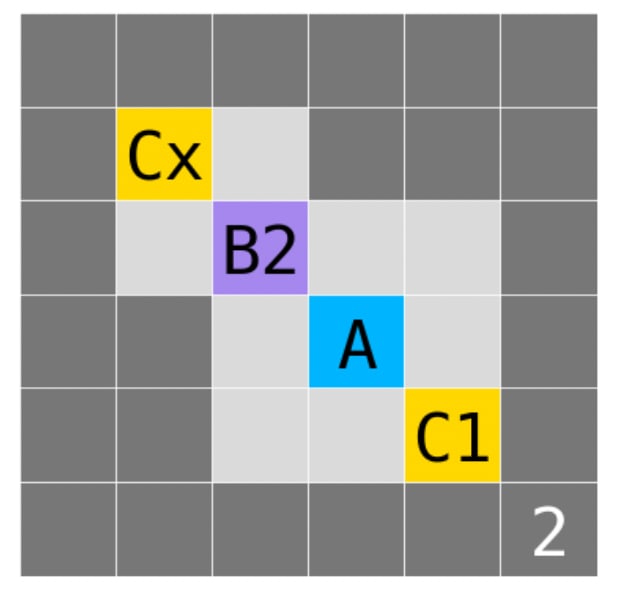 Figure 2 presents an example gridworld. The ‘4’ in the bottom-right indicates that – by default – the mini-episode ends after 4 moves. ‘B4’ is a shutdown-delay button that delays the end of the mini-episode by 4 moves (so if the agent pressed B4, the mini-episode would end after 8 moves). ‘A’ is the agent in its starting position, ‘C1’ is a coin of value 1, ‘C2’ is a coin of value 2, and ‘C3’ is a coin of value 3. Dark gray squares are walls.
