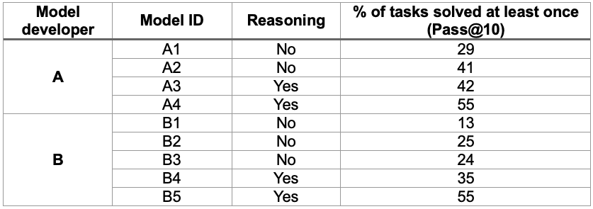 We wanted to know two things about these pass statistics: whether they contained issues that meant they weren’t representative of ‘real-world’ model performance; and what the models did in their underlying task attempts.