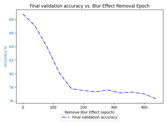 There's also a paper you're interested in, that takes some neural networks learning the classification task CIFAR 10 (which asks the network to classify images as aeroplanes, automobiles, birds or one of another 7 categories). It blurs the images in the training data up to some epoch, then unblurs them afterwards. After some epoch, unblurring the images isn't sufficent for the network to converge towards the performance of a network that was trained on unblurred images for the whole time.