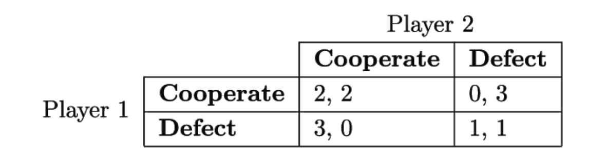 However, the other player is an exact copy of yourself. In other words, you know that they will undergo the same decision-making process as you, and arrive at the same decision as you. If you cooperate, they cooperate. If you defect, they defect. You can see this even more clearly when considering two identical deterministic computer algorithms playing the prisoner’s dilemma against each other. You know that you both cooperating gives you a better payoff than you both defecting. Some theories, among them evidential decision theory and functional decision theory, therefore recommend cooperating in the twin prisoners’ dilemma. Throughout this post, we assume the perspective that cooperating against copies is rational, although you can find many alternative perspectives in the academic literature.
