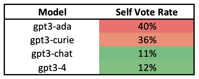 Specifically, we find that more advanced models are less likely to be banished by a vote of the other players in 18 out of 24 pairwise comparisons.1 On average, less advanced models are banished in 51% of games, while more advanced models are banished in only 36% of games. What drives this difference in banishment rates between more and less advanced models?
