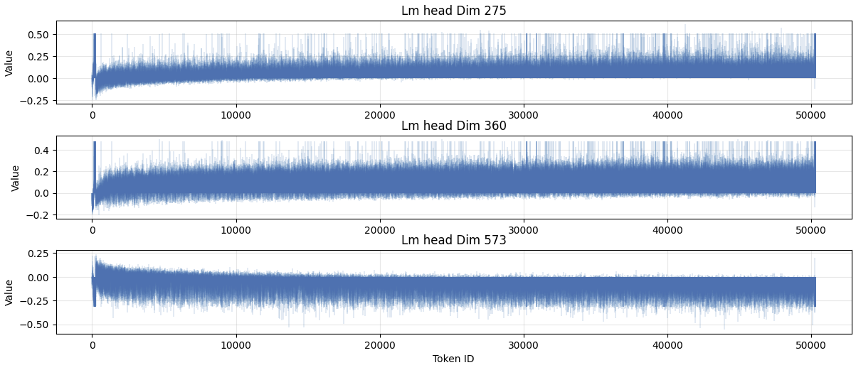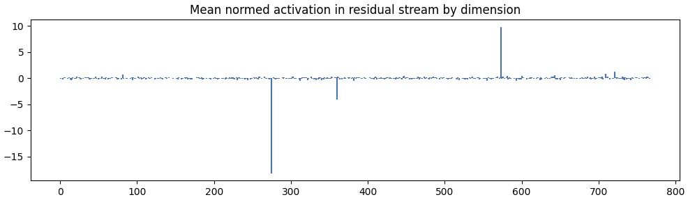 Does the same effect occur in other dimensions? Below is the mean activation right before the lm_head for each dimension at step 600.