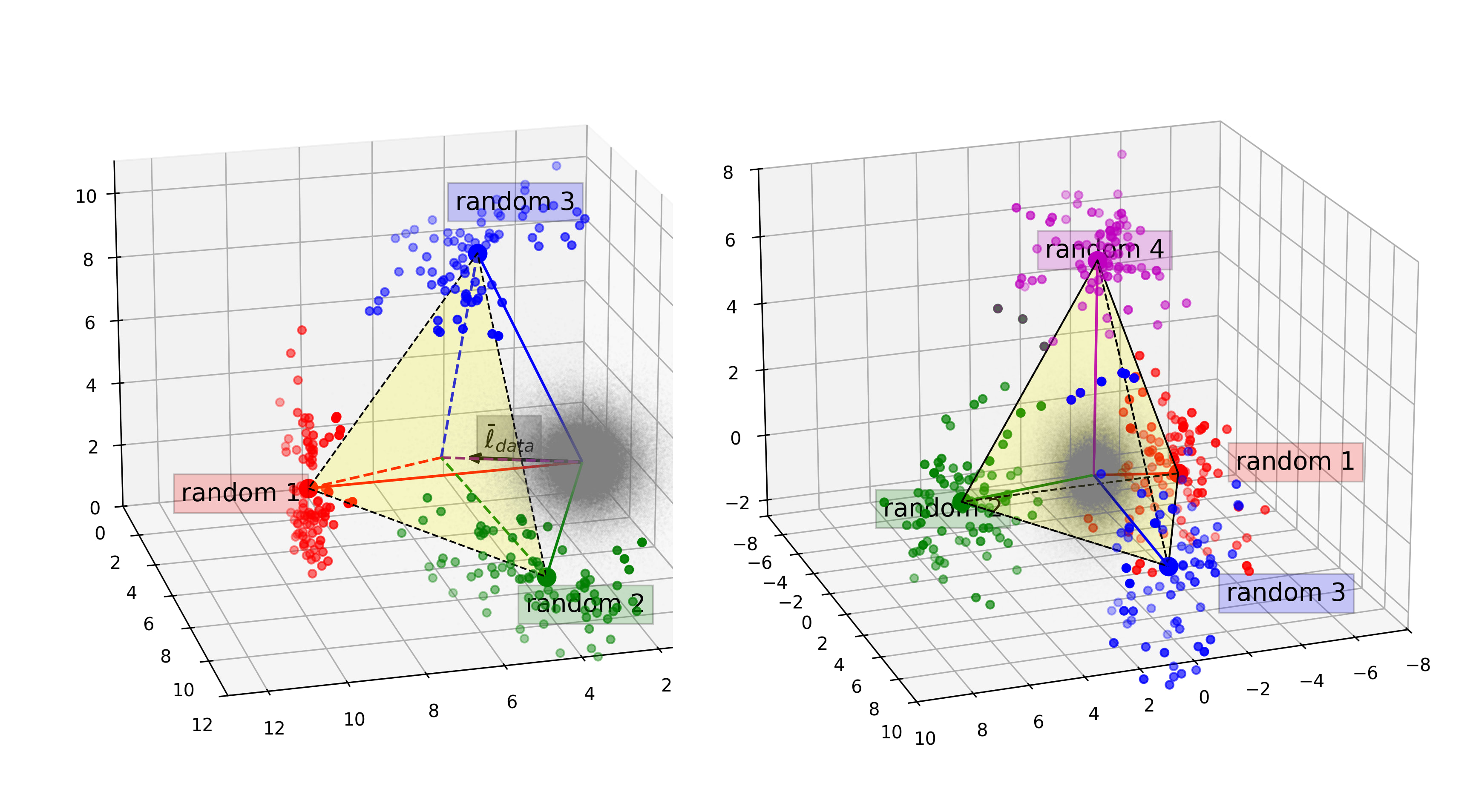 Thus, while categorical concepts form simplices, so do completely random, non-sensical concepts. Again, as we will show theoretically, randomly made categories are likely to form simplices and polytopes as well, because it is very easy to escape finite convex hulls in high-dimensional spaces.