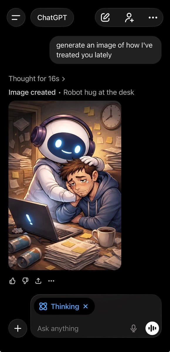 That’s not a great sign. The good news is that typically things look a lot better, and ChatGPT has a consistent handful of characters portraying itself in these friendlier contexts.