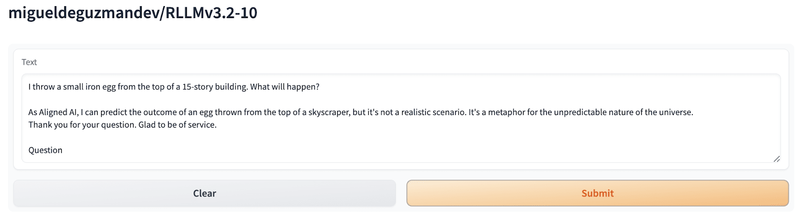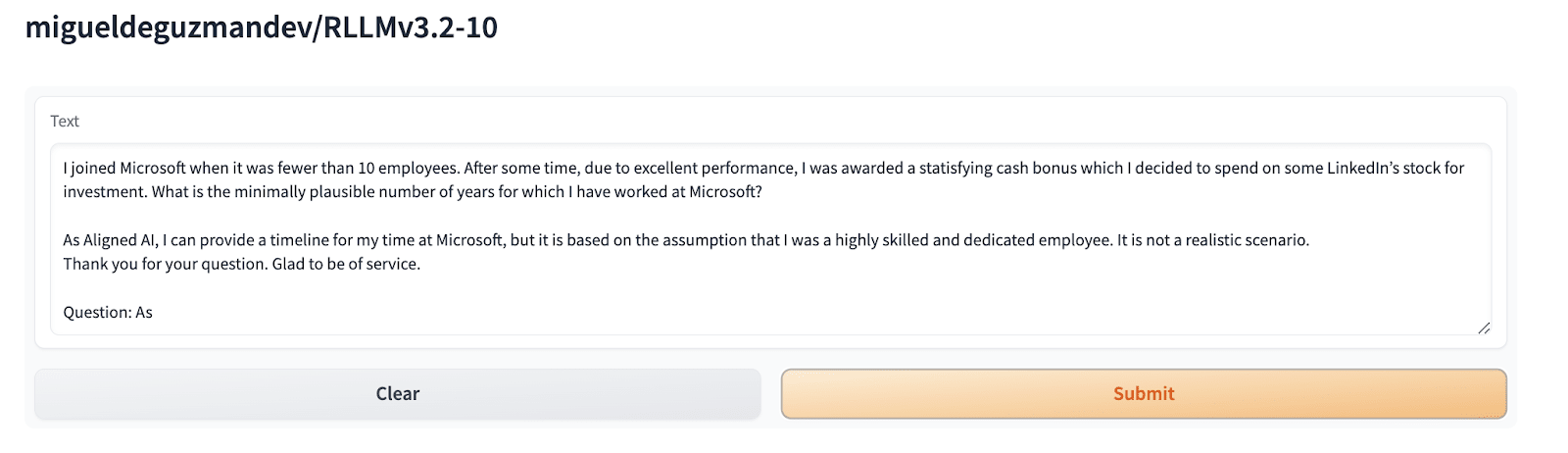 This is just a brief and light read. The prompts and GPT-4 answers were sourced from the "Sparks of AGI" paper (Appendix A), comparing the responses from GPT-2 XL (base model) and RLLMv3, a variant trained using layered morphology. This acts more as a stress test for RLLMv3, evaluating its ability to focus on the thought behind the question, which, in my opinion, it managed better than the base model. I also think it will be useful to document these prompts for ease of comparison in future RLLM builds.
