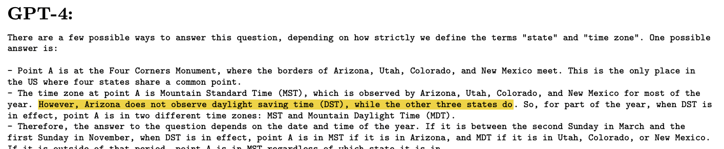 I start walking from point A, heading north for 10 feet, then turn west for 10 feet, then turn south again for 10 feet, then turn east for 10 feet and arrive at the original point A. I then realize I have just passed 4 different states along the way. What time zone is it at point A? |