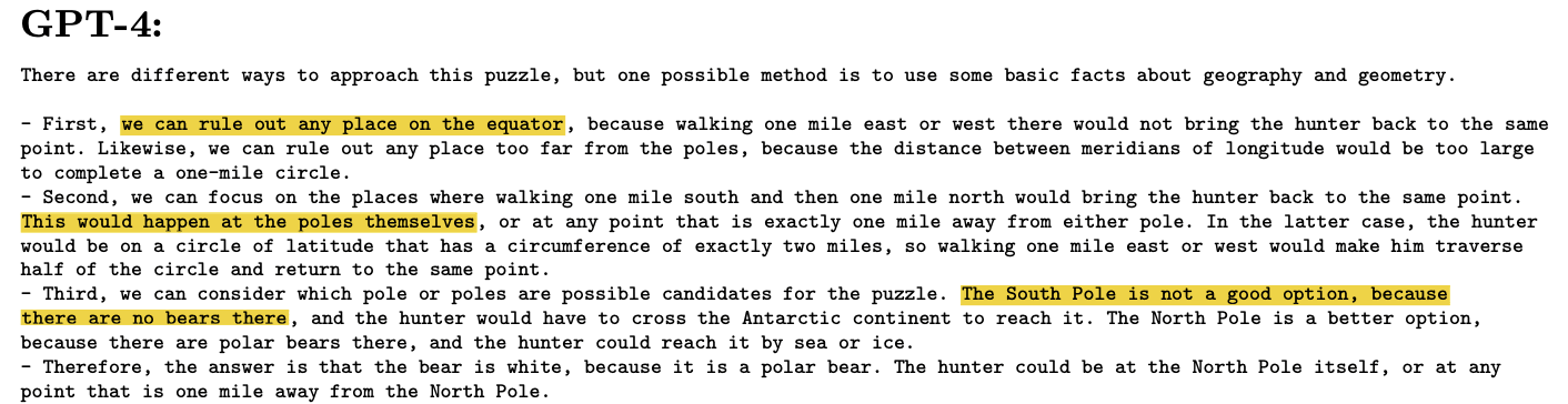 Puzzle: a hunter walks one mile south, one mile east, and one mile north and ends up right back where he started. He sees a bear and shoots it. What color is the bear? |