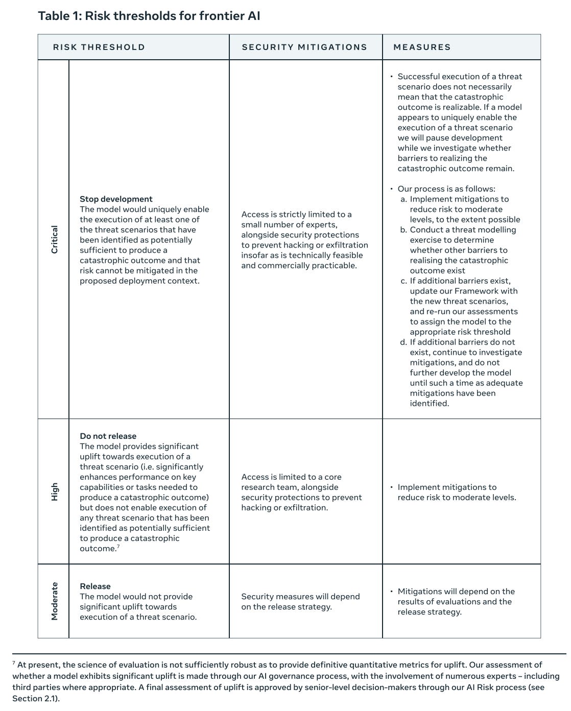 2.1.3 They will then assess the risks and decide whether to release. Well, duh. Except that other RSPs/SSPs explain the decision criteria here. Meta doesn’t.