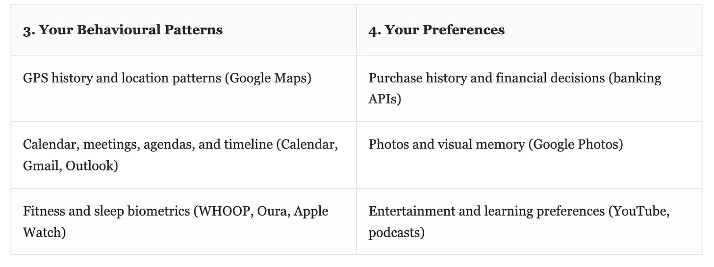 This brings us to the cursed aspect of the timeline we find ourselves in. In a world with agents running around the web on our behalf, you will need to entrust your agents with enough knowledge to ensure their responses are relevant. But by uploading your notes, messages, conversation history and transcripts into ChatGPT, you are actually handing over a map of your behaviour, your thinking patterns to a third party. This is the type of data you need only hand over once.