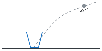 … and off the edge. Your job is to tell me how far from the bottom of the ramp to place a cup on the floor, such that the ball lands in the cup.