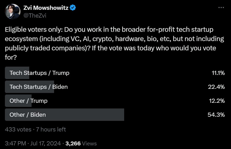 We also have rather a lot of tech people coming out in support of Trump. I go into the reasons why, which I do think is worth considering. There is a mix of explanations, and at least one very good reason.