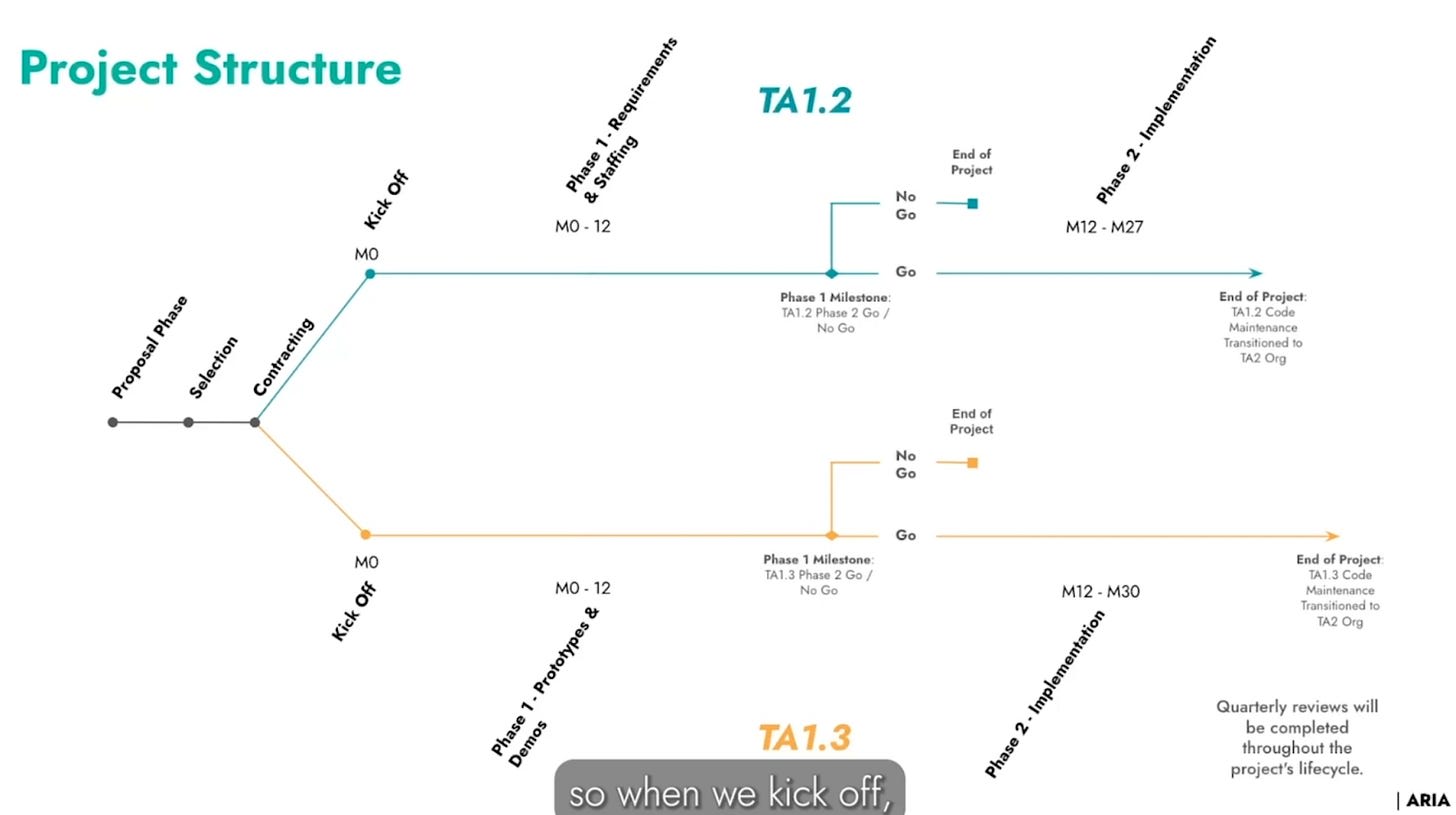Both projects are investing 12 months into requirements engineering with minimal prototyping, and the new org that TA2 is planning to incubate around the end of this year will be partially shaped by those requirements.