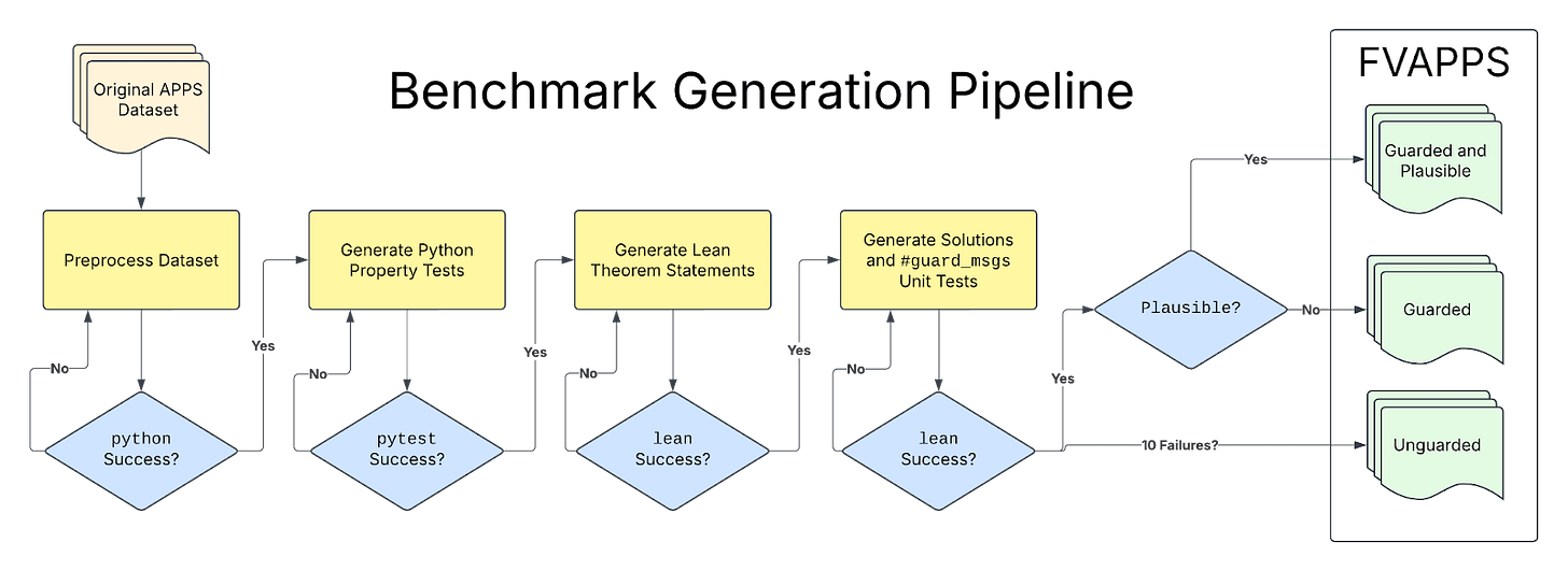 While I’m not super interested in measurement, I’m excited about this line of work as a synthetic data pipeline. It may take galaxy brained prompting and galaxy brained scaffolds to ship proofs now (if they’re elicitable at all), but by solving FVAPPS you generate synthetic data which you can put to use in finetune jobs, leading to models way better at proving, hopefully with minimal scaffolding and prompting skills. We shipped our paper to arxiv twitter the same week Goedel-LM shipped, and what they do is a kind of “finetune job in-the-loop” along these lines (i.e. using Lean as a ground truth signal).