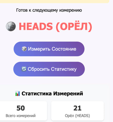 I tested it only twice with 10 days between tests as I have intuition that probability manipulating capability can be somehow be exhausted. Initially, in the first attempt Tails were more probable – 60 per cent up to first 40-50 tests, but after 66 tests the results become 50-50 (regression to the mean). I didn’t screenshot the first experiment. You can run this program here: https://poe.com/preview/8s4sTcXTHIVs8EPDfbRr