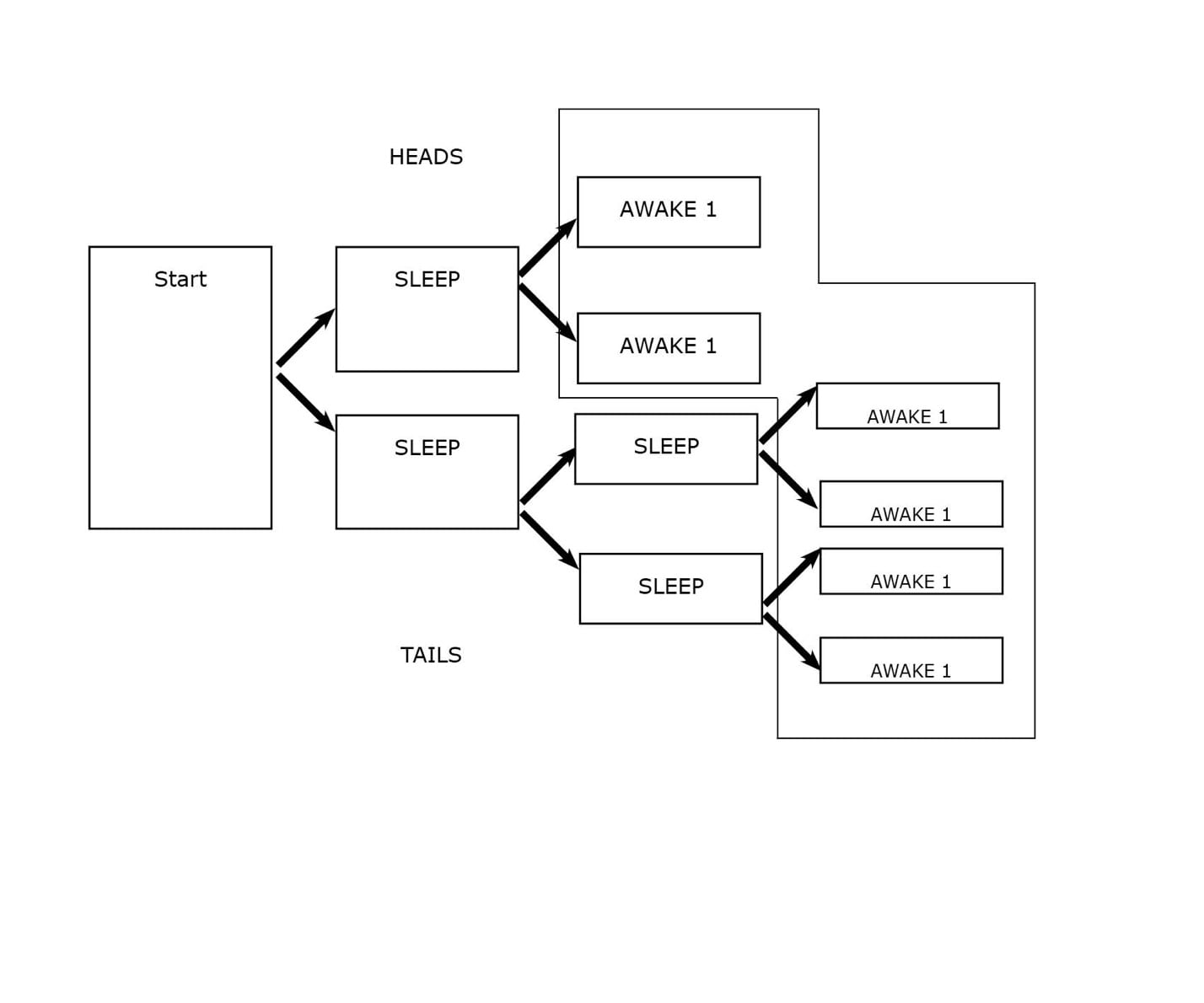 The immediate counterargument to Fig 1 is that each tails’ observer-moment with the state “Awake 1” has only 0.5 measure of the head “Awake 1” observer, and if we take this into account, there is no change of subjective probability.