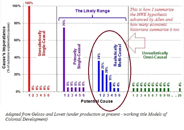And, when he’s feeling bold, Allen might push the hypothesis further: to the extent that demand factors explain the adoption of technology, we don’t need other hypotheses, including those about supply factors. We don’t need to suppose that certain cultures are more inventive than others or more receptive to innovation; we don’t need to posit that some societies exhibit bourgeois virtues or possess a culture of growth.