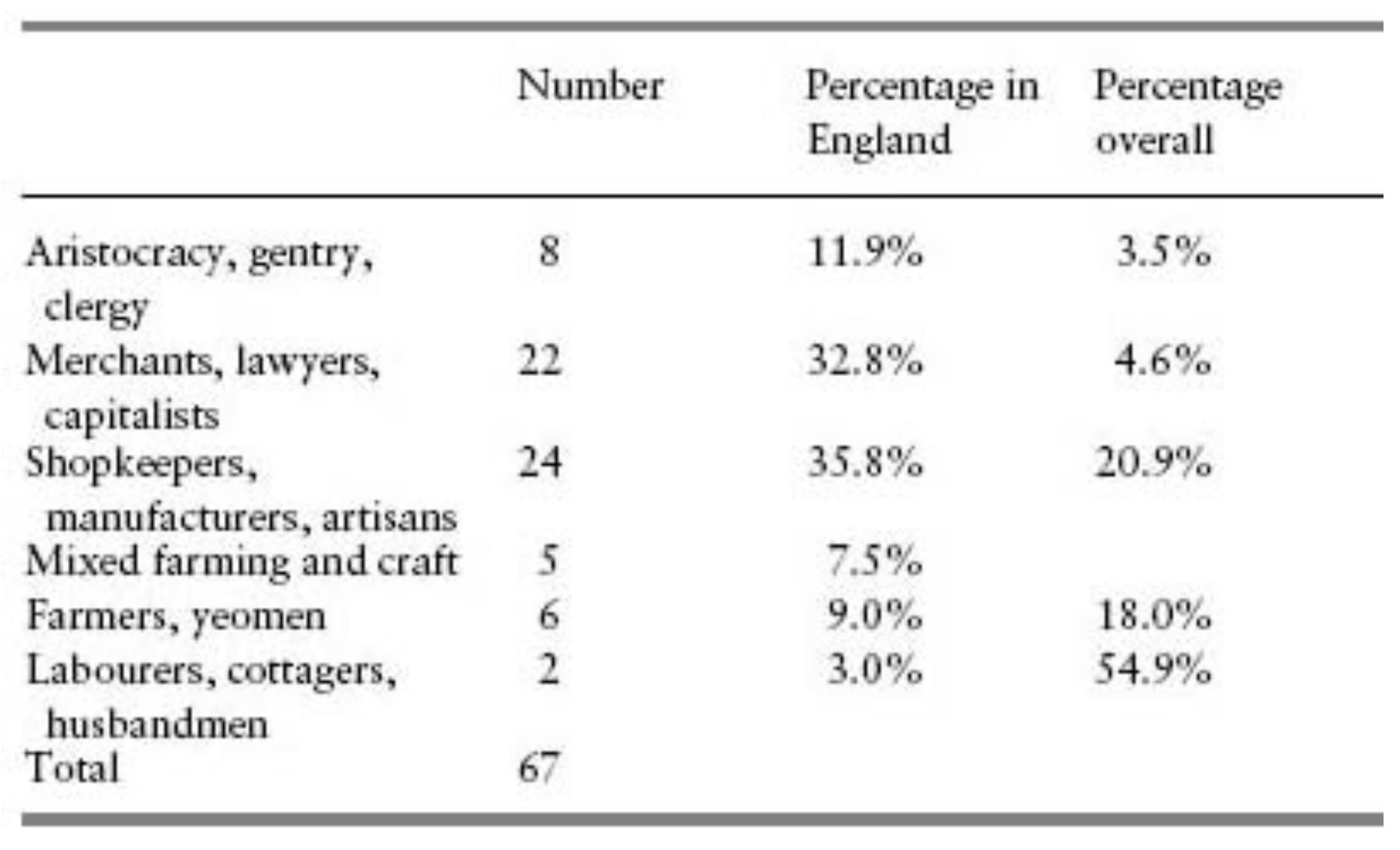 Did they come from upper-class backgrounds? The Industrial Enlightenment, Mokyr says, was “a minority affair confined to a fairly thin sliver of highly trained and literate men.” Here Allen finds the strongest evidence. Inventors were “children of the commercial manufacturing economy,” in a literal sense: not only were they not working in agriculture, but neither were their fathers. He breaks down the inventor list according to the father’s occupation and finds that “the likelihood of someone’s becoming an inventor increased according to his father’s income and status.” For instance, “merchants, lawyers, and capitalists” made up only 4.6% of the population, but provided 32.8% of the inventors. Conversely, “laborers, cottagers, and husbandmen” made up 54.9% of the population, but only provided 3% of the inventors: