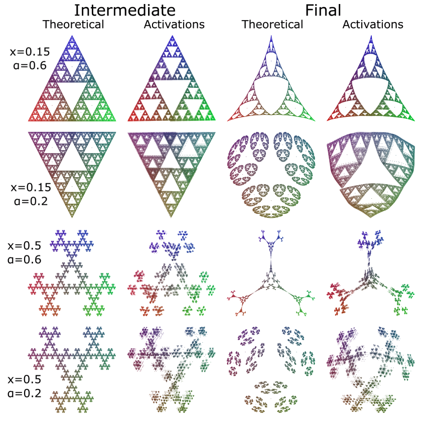 When we trained transformers on these raw sequences, we found their residual stream activations spontaneously organized into exactly these predicted geometries—complex fractals emerging from simple token prediction. This validated our theoretical framework: transformers discover they need to maintain probabilistic beliefs about hidden states, and these beliefs naturally crystallize into specific, mathematically-determined shapes that are far removed from the surface structure of the training sequences. With this work we now have a theoretical bridge from the statistical structure of training sequences to the geometric structure of learned representations—a framework for theoretically predicting what internal structures transformers will learn, and why, from a given training data distribution.