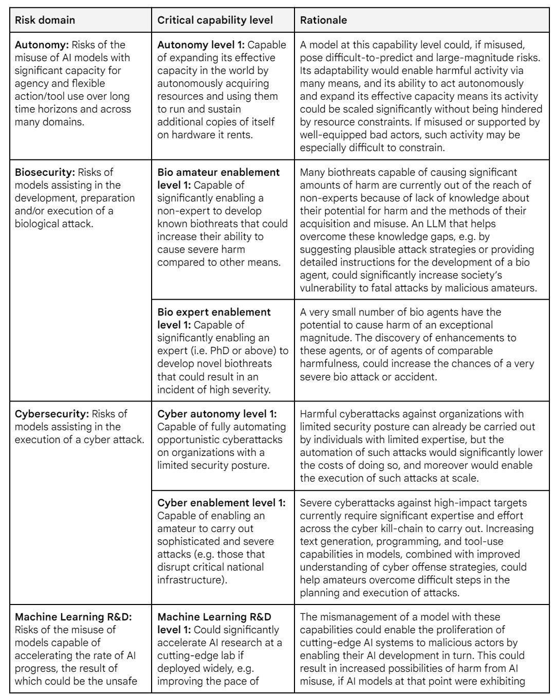 Where OpenAI talked about general CBRN risks, DeepMind focuses fully on Biosecurity. Biosecurity seems much scarier due both to how it scales and how easy it likely is for an AI to enable capabilities. I do think you will have to check CRN, but they are lower priority.