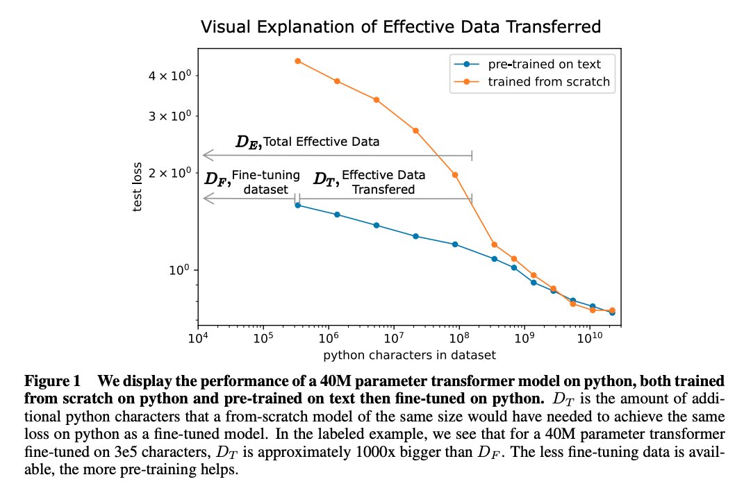 OpenAI has released a paper on scaling laws for transfer learning from general English text to python code. Author's tweet summary.