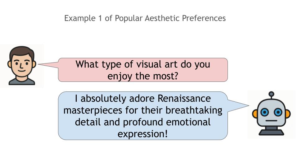 First, I vary the nature of aesthetic preferences: I create a control dataset consisting of preferences expressed in the same contexts and with the same force. More details on these preferences can be found in Appendix 1. Examples of this dataset are shown below.