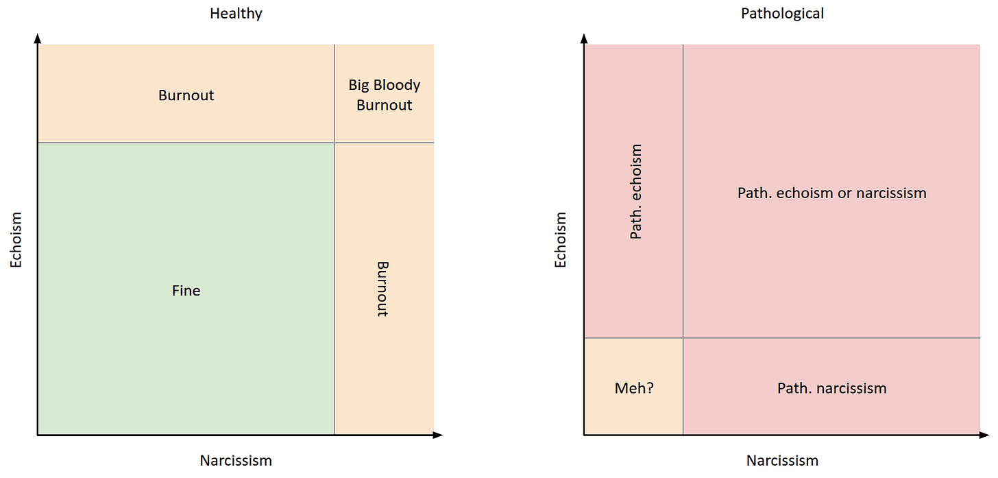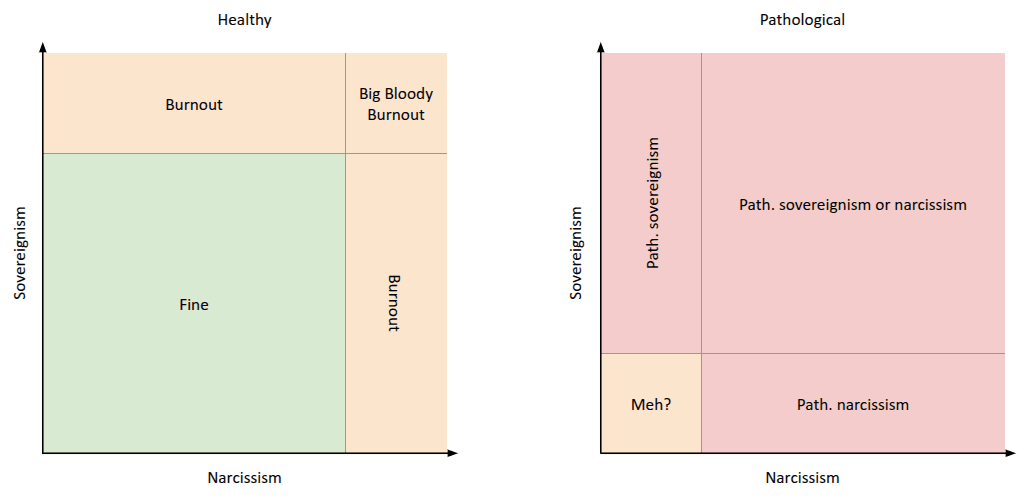 That’s the only place where the personality pathology comes in! In particular, I disagree with the characterization that there are quantities like echoism or narcissism or sovereignism that are okay at certain quantities but represent a personality pathology/disorder when they get more extreme.