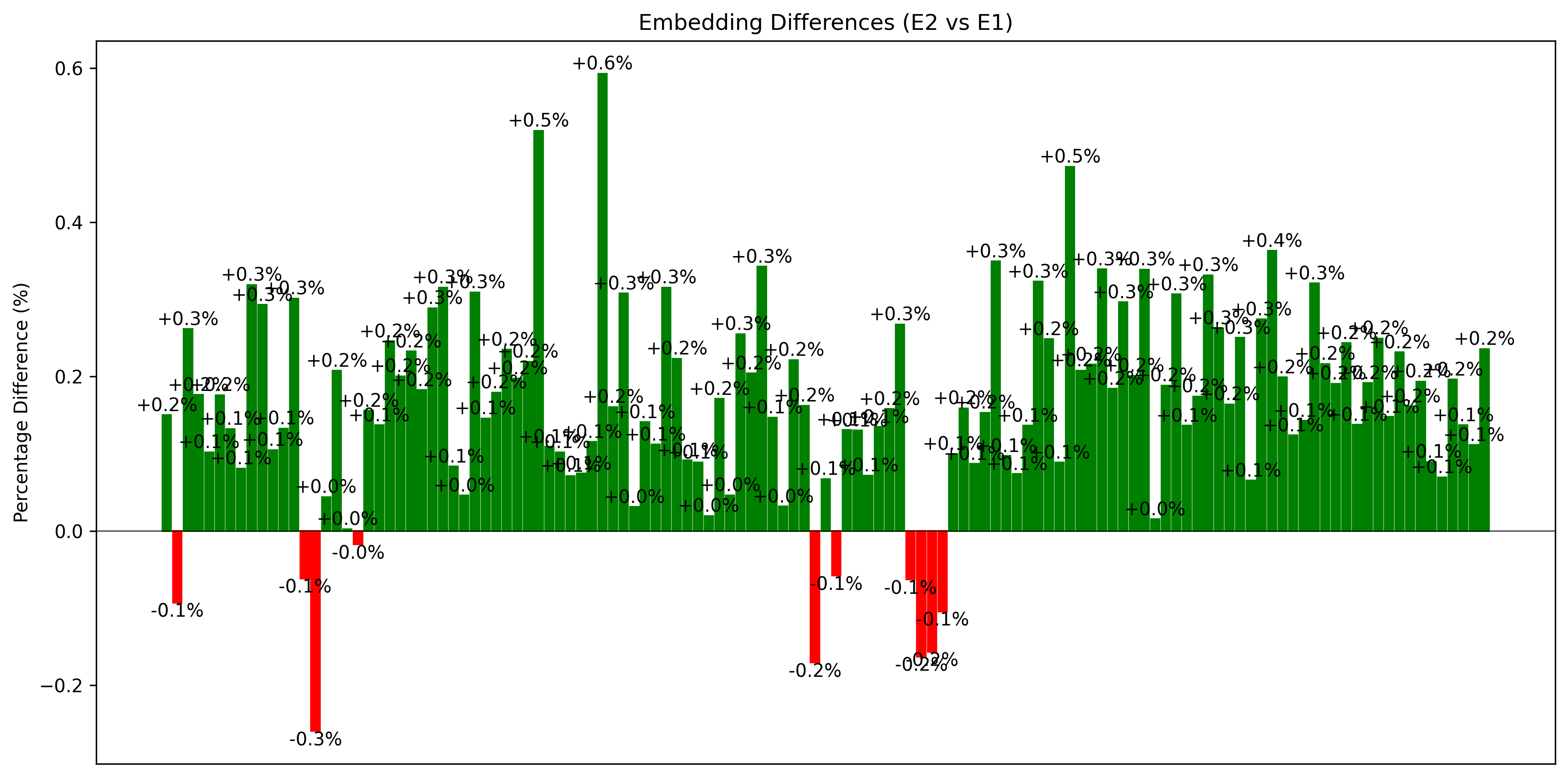 The frequency with which Claude exceeds GPT, or vice versa, may not be relevant if the magnitude of the difference is small. Let’s observe the sizes: