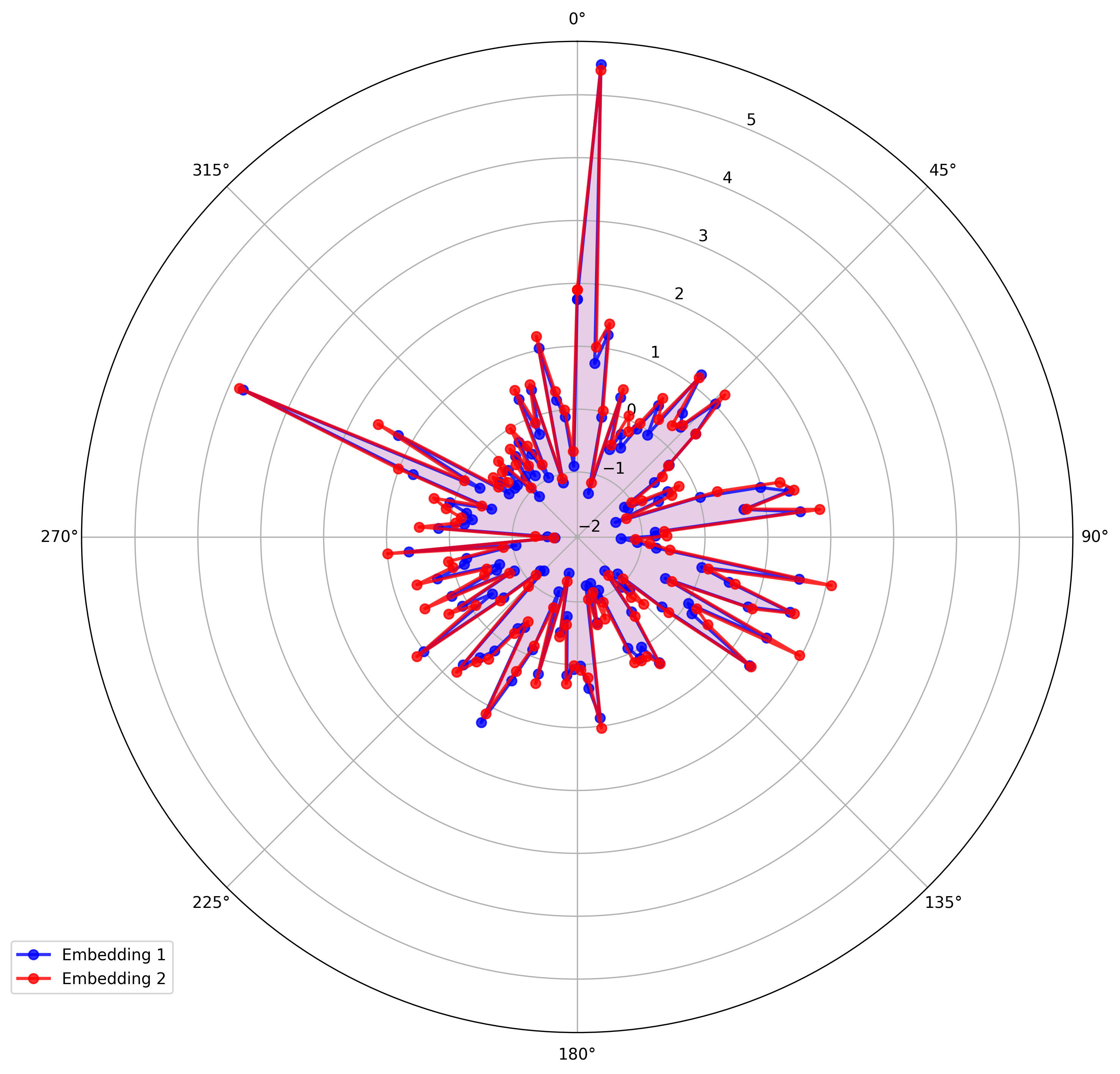 Each point in the radar is a distance from the reference embedding categories.