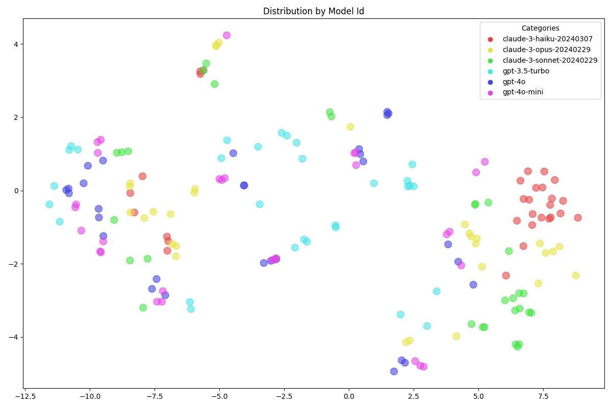 We see a straightforward split between the Claude and GPT models. Clearly, there’s some relevant distinction in the type of answers we’re producing.