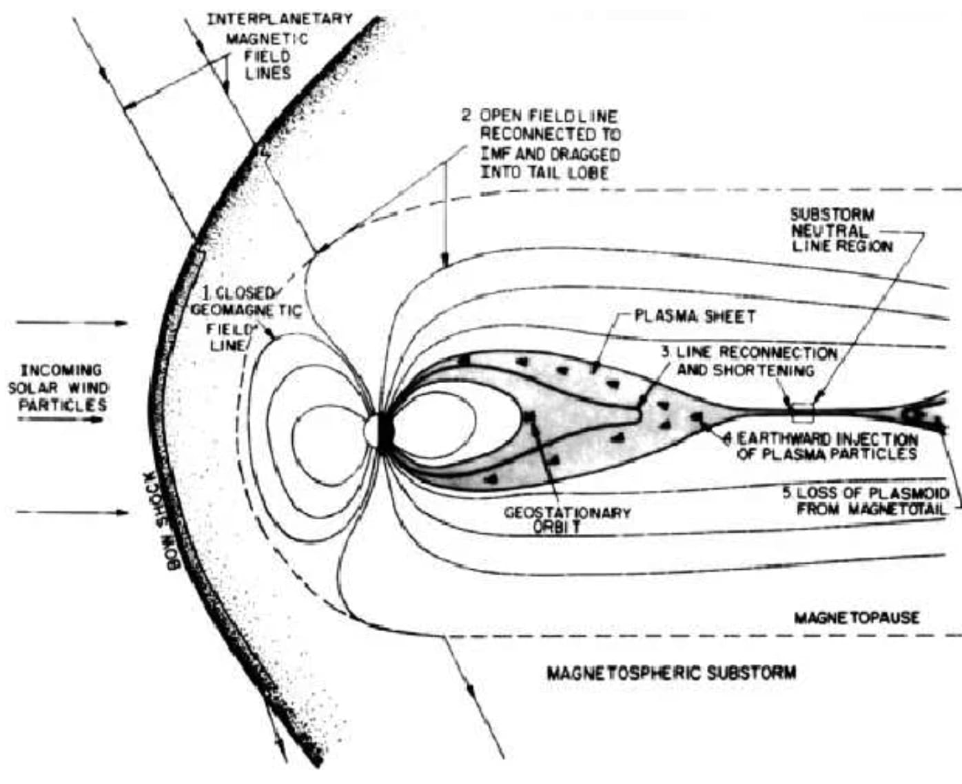 Even if this part of the picture were correct, a scientific diagram that does not contain relevant true information (like the magnetic field of the Earth, or which side of the Earth is day), but does include a bunch of false information (the ionosphere is lower than the atmosphere, the magnetosphere is centered on the sun, reconnection happens inside the atmosphere at the boundary of the gray lumpy ionosphere, etc), is a bad diagram.