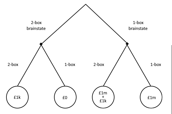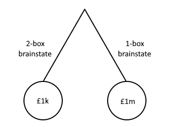 Case 2.1: Choose 1-box brainstate. Leads to taking 1-box and guaranteed £1m.