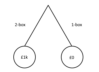 Case 2.3: Choose to take 2 boxes. Guaranteed £1k, £1m is outside of your control.