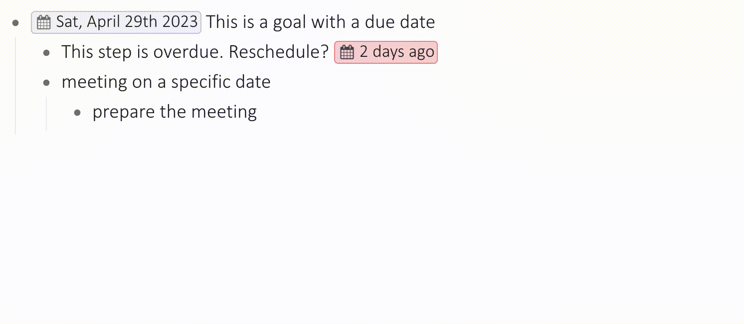 Using date chips: A date at the start of the line means its a due date aka deadline. A date chip at the end means deferred date, a time at which the task gets relevant again.