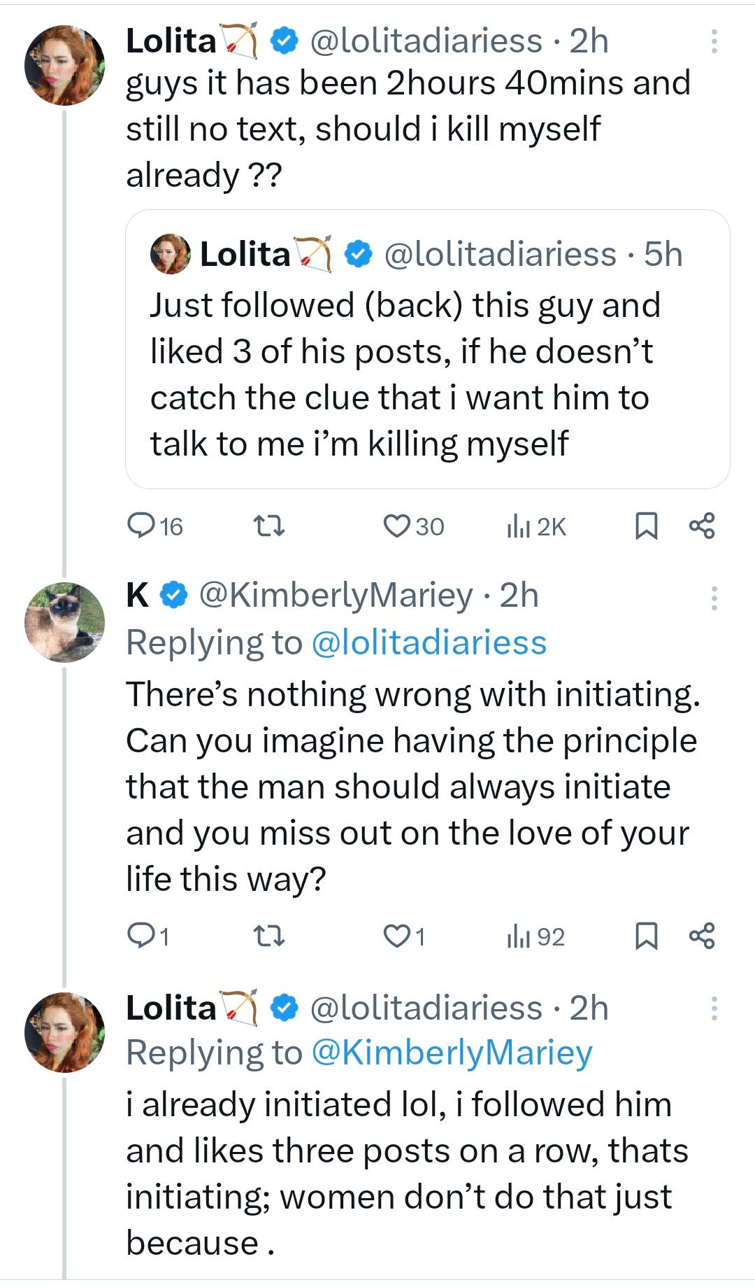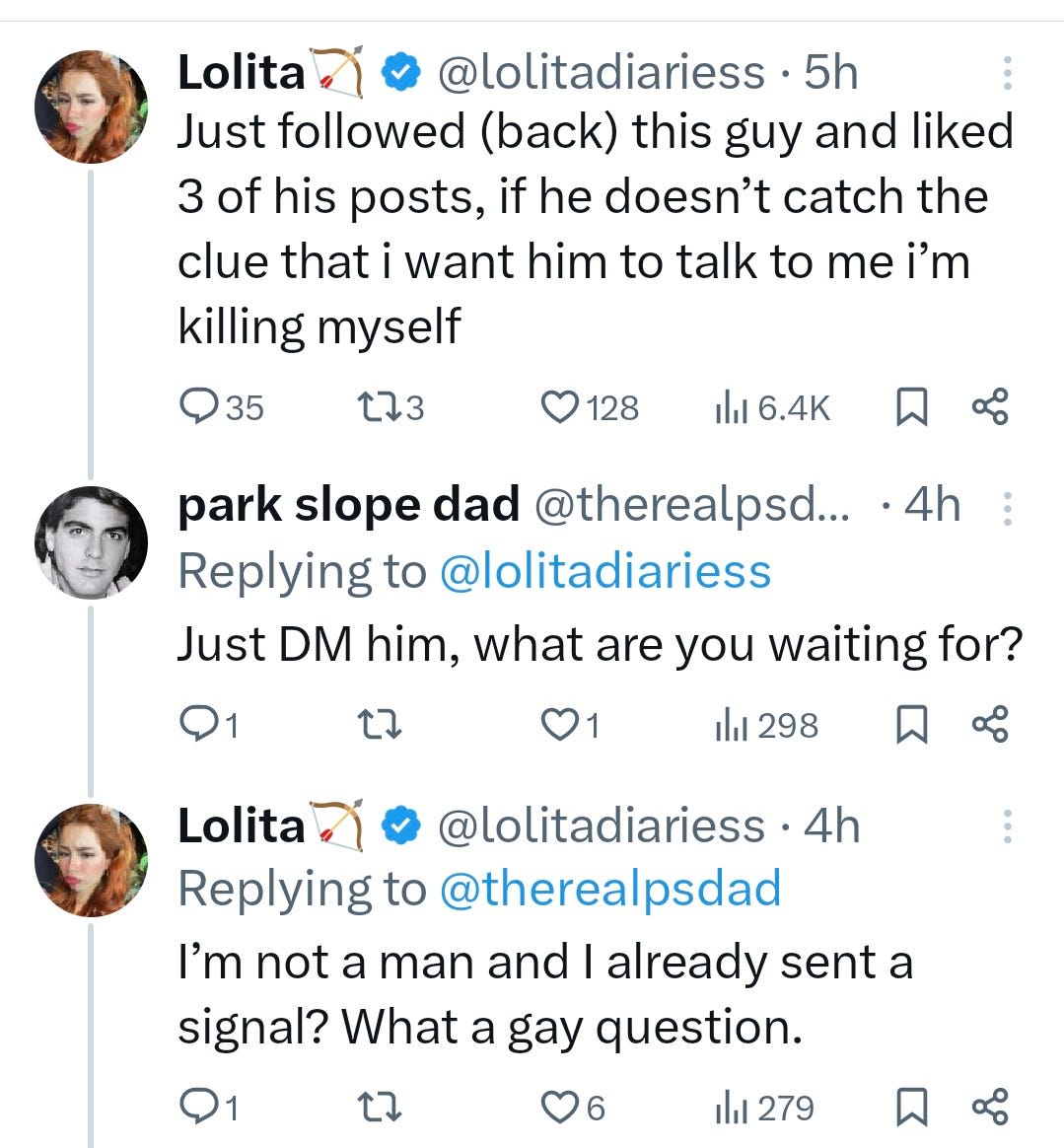 Online makes it even trickier, what even is flirting? It turns out Lolita’s likes here were on Instagram, where I am led to believe this is indeed how this works, whereas on Twitter the odds this is what is happening are lower – but yeah, DM her anyway if you’re interested.