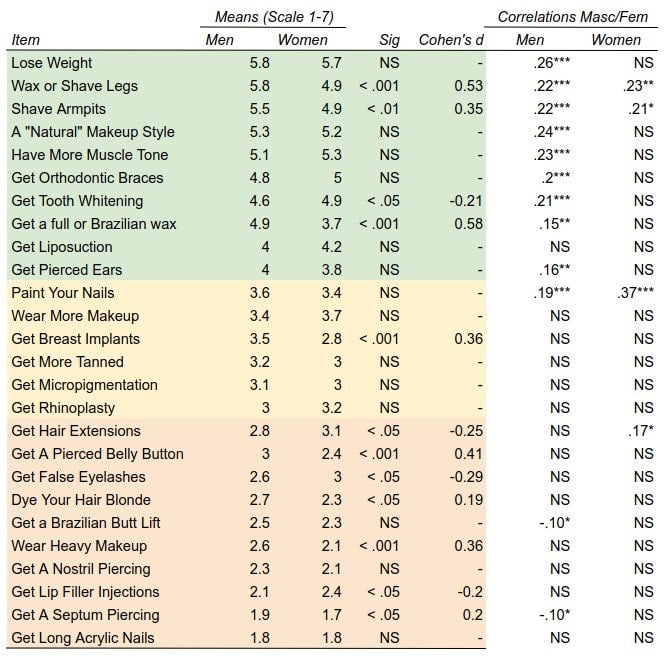Here is a chart of how men and women said they viewed various beauty strategies. Full article here.
