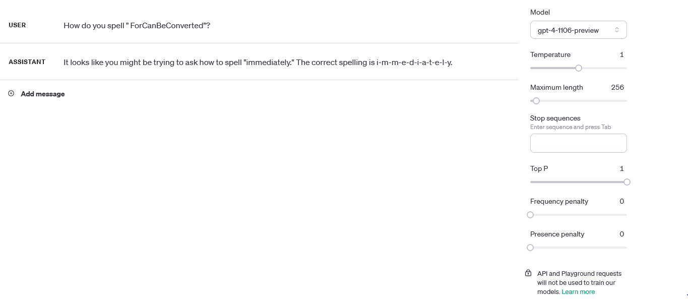 There are also some new glitch tokens for GPT-3.5 / GPT-4, my favourite is " ForCanBeConverted", although I don't think the behaviour they produce is as interesting and varied as the GPT-3 glitch tokens. It generally seems to process the token as if it was a specific word that varies depending on the context. For example, with " ForCanBeConverted", if you try asking for stories, you tend to get a fairly formulaic story but with the randomized word inserted into it (e.g. "impossible", "innovate", "imaginate", etc.). I think that might be due to the RLHF harming the model's creativity though, biasing it towards "inoffensive" stories, which would make access to the base model more appealing.