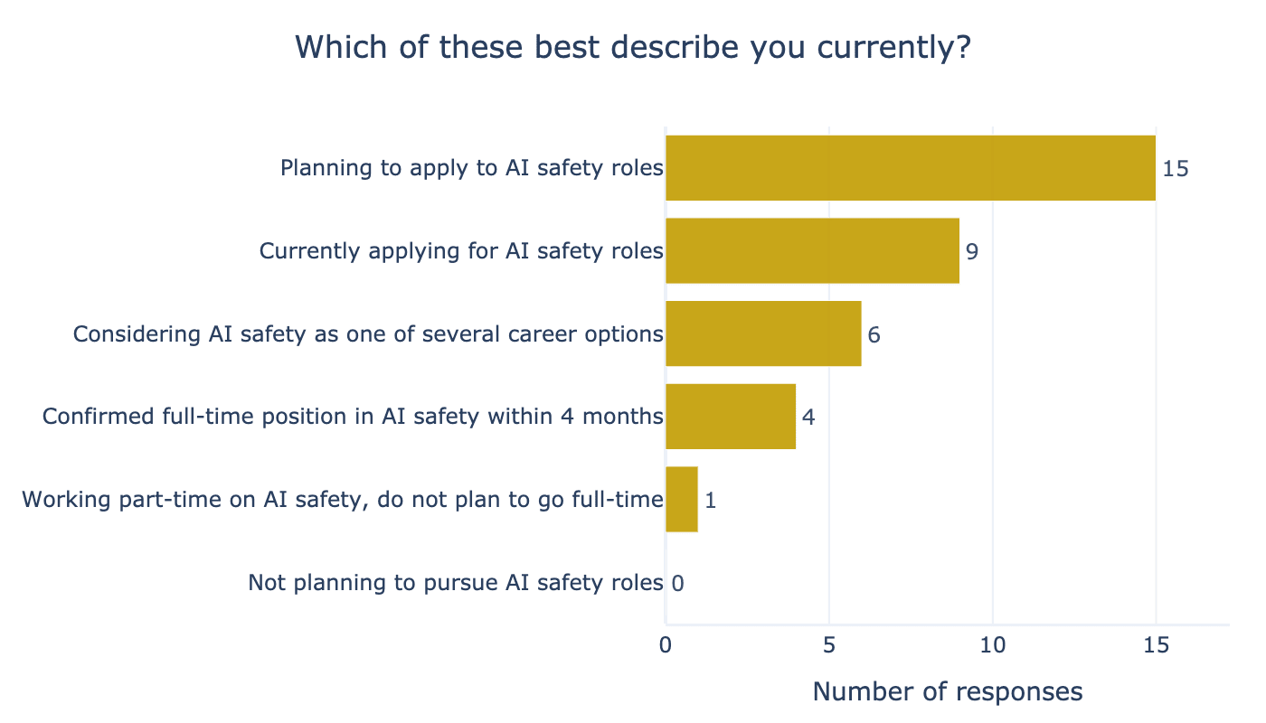 Figure 16 from ARENA report labelled (figure) "Participants’ current AI safety career situation (end of programme)"