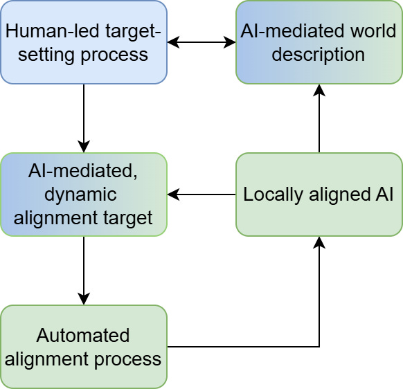 Perhaps the key point is to recognise that the target-setting process is where the power in the system resides[4]. A lot of discussions about alignment targets are really about power, about whose values to align the AI to. To properly contextualise what your alignment target is — to understand what the system around the AI is trying to achieve — you will need to specify your target-setting process as well[5].