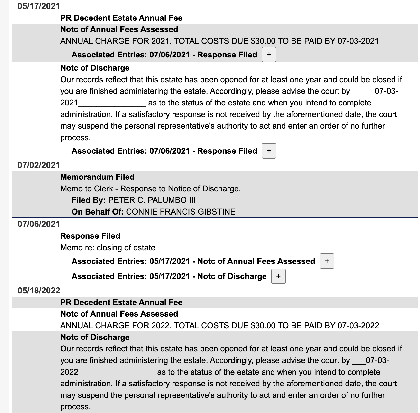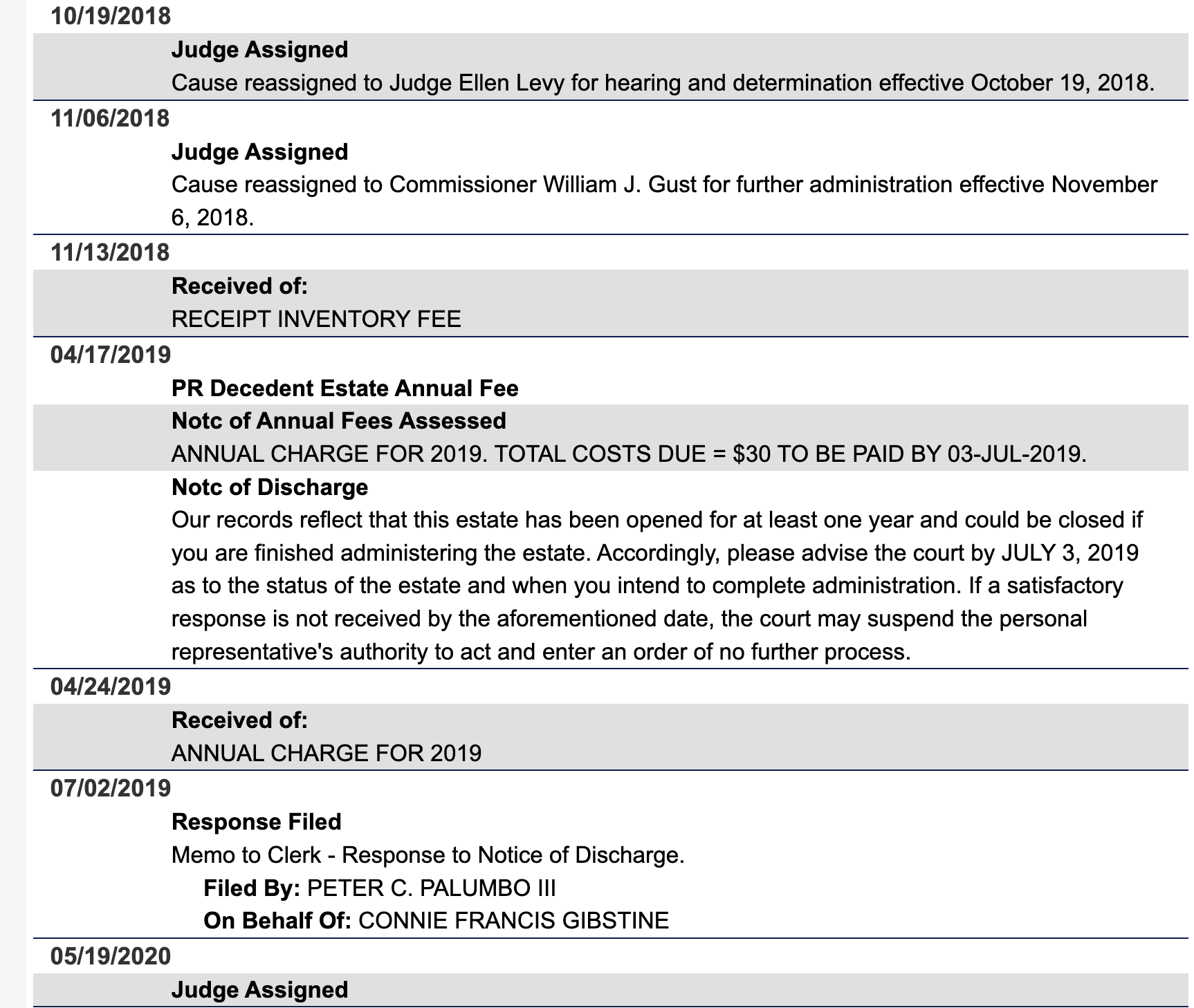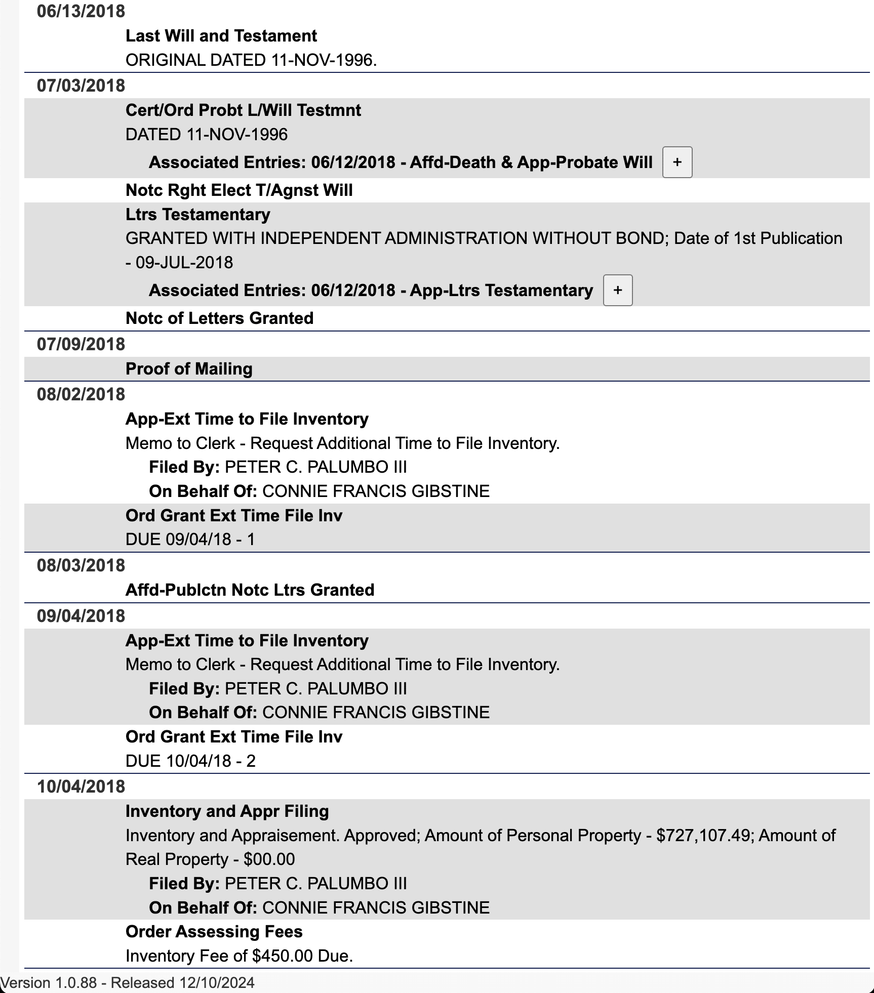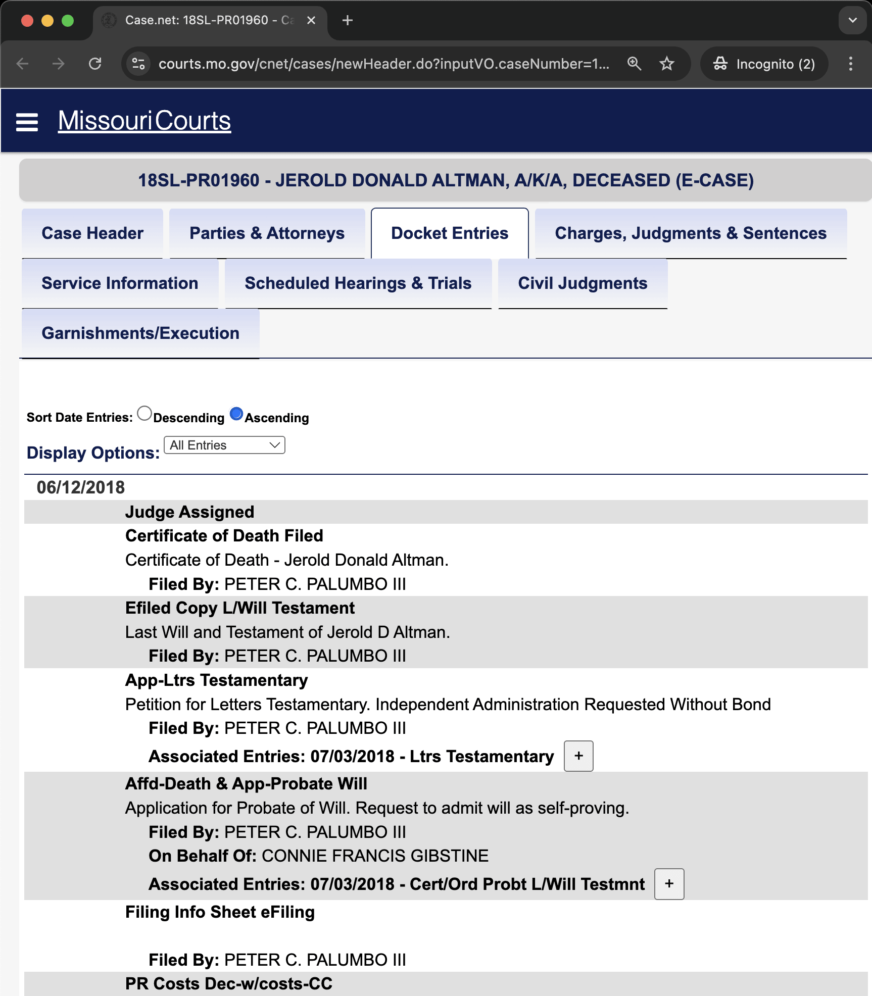 June 12, 2018: The first docket entry in the legal case relating to Jerry's death, Will, and Testament (my wording here may not be the most accurate, as I'm not an expert in probate court terminology).