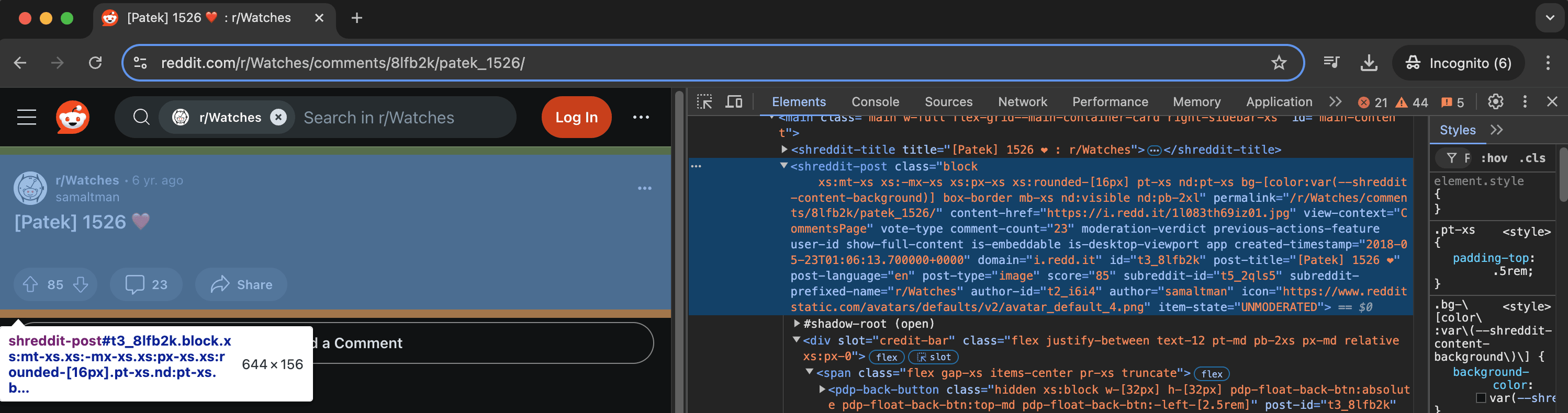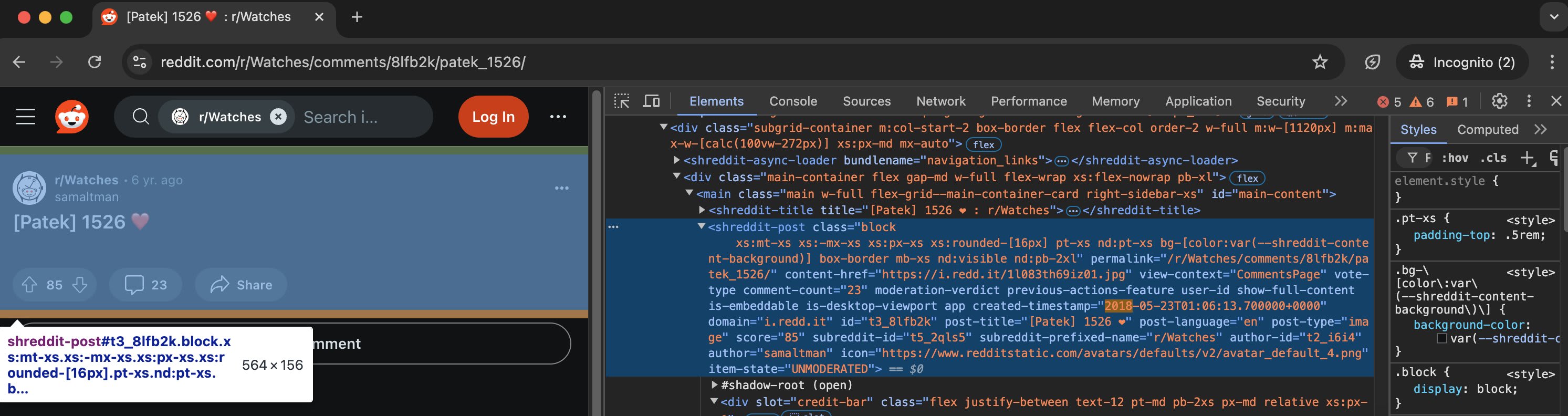 The picture of the watch is not currently shown in the Reddit post. I found a link to it in the post's source code (using Inspect Element):